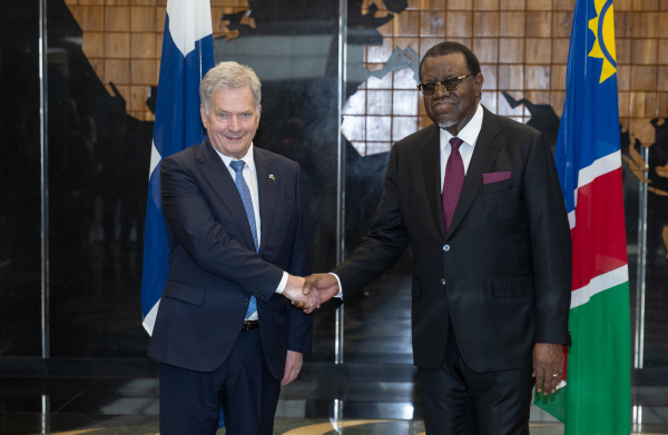 At their meeting, the two presidents discussed bilateral relations between Finland and Namibia and the global political situation.
